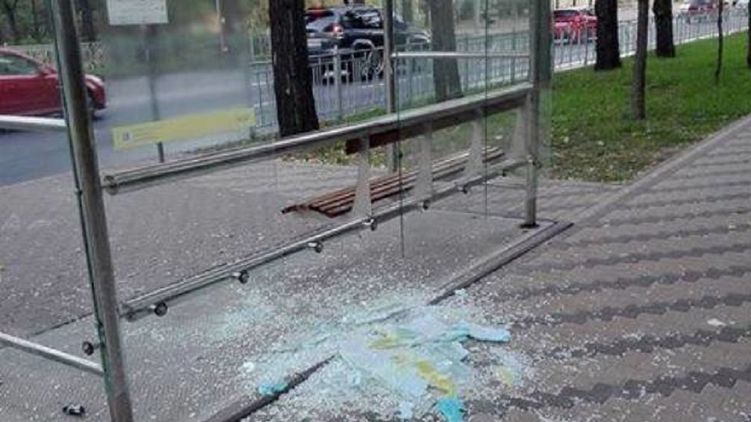 В Киеве вандалы разбили стеклянную остановку на Русановской набережной