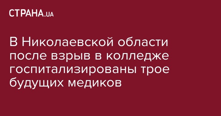 На территории частного медицинского колледжа в городе Первомайск во время учебного процесса от взрыва получили ожоги трое учеников. Об этом сообщили в Главном управлении Госслужбы по чрезвычайным ситуациям в Николаевской области.