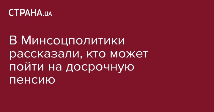 В Минсоцполитики рассказали, кто может пойти на досрочную пенсию