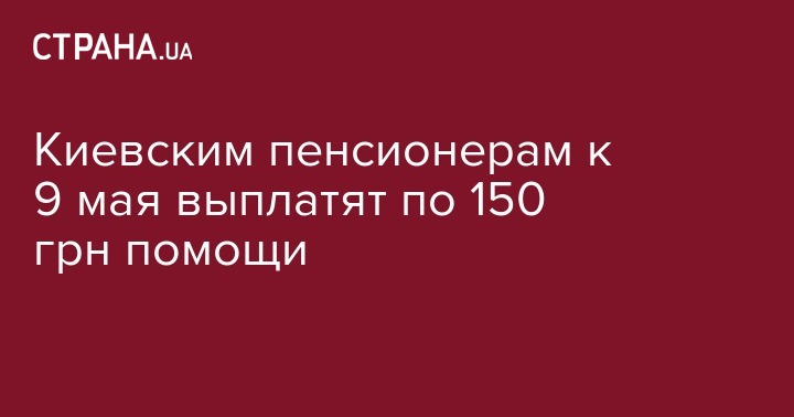Киевским пенсионерам ко Дню Победы 9 мая выплатят единоразовую материальную помощь в размере 150-350 грн. Как сообщил директор Департамента социальной политики КГГА Юрий Крикунов, всего на эти выплаты город потратит 20 млн грн, передает 44.ua