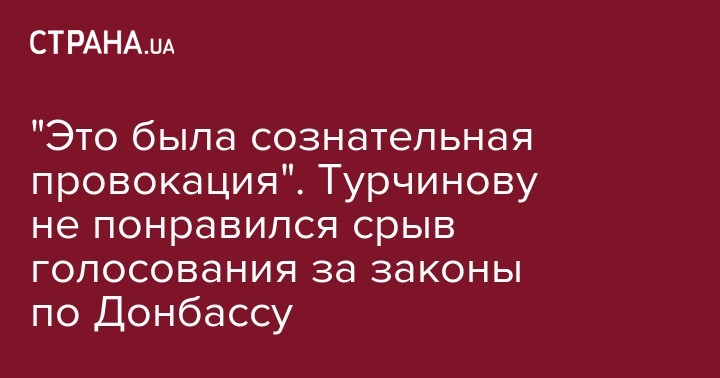 Сознательной провокацией является блокирование работы Верховной Рады депутатами, выступающими против принятия законопроекта президента о реинтеграции Донбасса. Об этом заявил секретарь Совета национальной безопасности и обороны Украины Александр Турчинов, пишет "Интерфакс-Украина".
