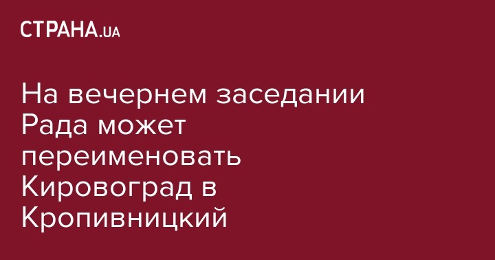 На вечернем заседании Верховная Рада собирается рассмотреть постановление О переименовании отдельных населённых пунктов и районов. В кулуарах парламента ходят слухи, что этот пункт, который в повестке дня обозначен без номера, это переименование Кировограда в Кропивницкий. Об этом передает корреспондент "Страны" из парламента.