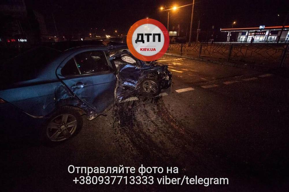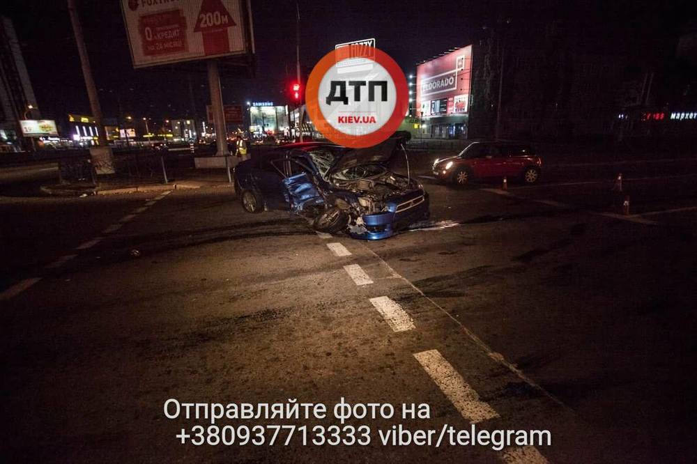 Аварии случились 7 октября около 23:30 на перекрестке проспектов Оболонского и Степана Бандеры. Очевидцы ДТП утверждают, что "Subaru Forester" на большой скорости протаранил "Audi", которое двигалось впереди.