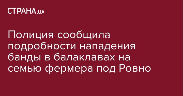 В ночь на 8 октября, группа лиц в балаклавах проникла на территорию фермы в Ровенской области и напала на охранника и семью владельца хозяйства. Об этом сообщает пресс-служба Нацполиции области.
