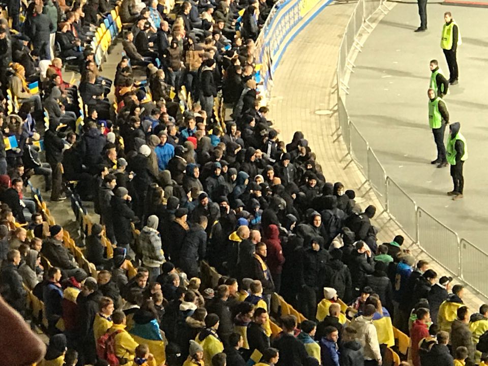 27 Фанаты скандируют "Україна понад усе", "Слава Україні, героям слава". "Хто не скаче, той москаль", "Путин х..ло". Тут только остается добавить, что на этом матче сборная Украины борется за право поехать на чемпионат мира в Россию.