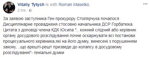 "Горбатюк приводит разгромные аргументы и рассказывает как в ГПУ выносятся решения", - пишет в Facebook адвокат Роман Маселко.