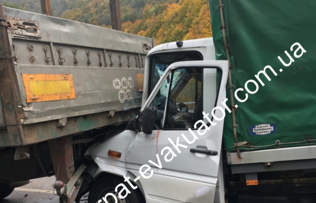 На трассе Киев-Чоп столкнулись Man, Iveco и Mercedes, а виновник ДТП скрылся на Audi. Фото