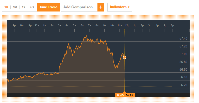На прошлой неделе нефть марки Brent приблизилась к рекордным $58