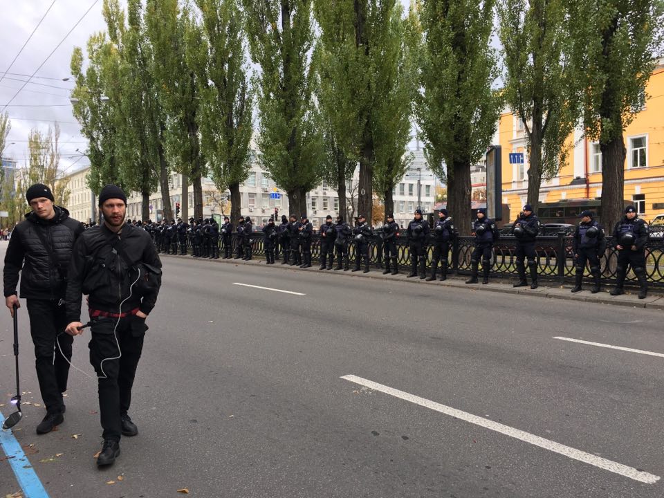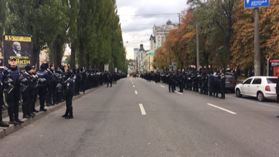 13:30 Около парка Шевченко уже собирается полиция в полной экипировке. Там уже стоят десятки бойцов. К ним подтягиваются другие.