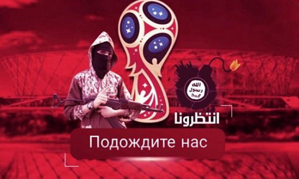 Также пропагандисты ИГИЛ опубликовали постер с изображением террориста с автоматом и бомбой на фоне футбольного стадиона и логотипа ЧМ-2018.