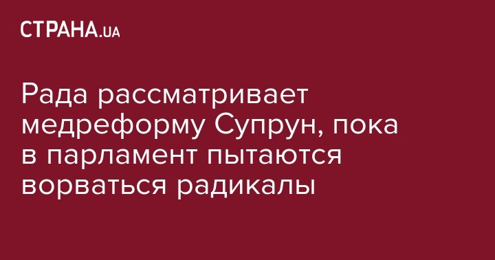 Верховная Рада приступила к рассмотрению медицинской реформы несмотря на массовые акции протеста под стенами парламента с требованием рассмотреть совсем другие законопроекты. Об этом передает корреспондент "Страны".