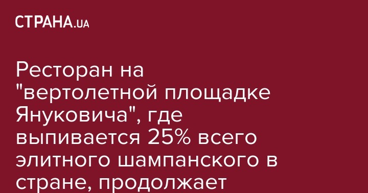 Ресторан на "вертолетной площадке Януковича", где выпивается 25% всего элитного шампанского в стране, продолжает работу, несмотря на акции националистов