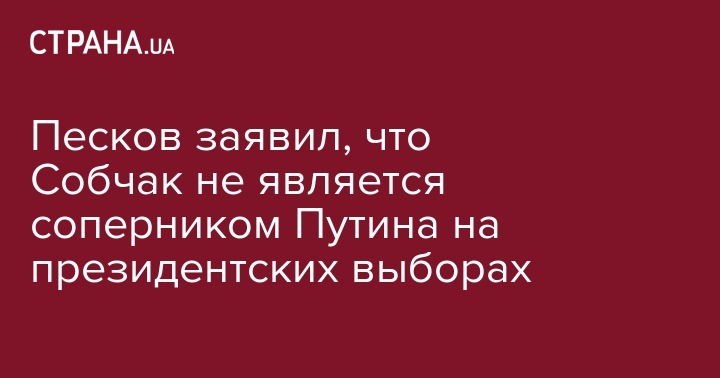 "Пока, как мы знаем, избирательная кампания не началась, пока никаких зарегистрированных кандидатов нет, пока вряд ли можно говорить о соперниках Путина, потому что сам Путин еще не говорил о своем намерении баллотироваться, и именно говорил о том, что до начала избирательной кампании еще есть время. Сейчас он предпочитает концентрироваться на президентской работе", – сказал Песков в ответ на вопрос о том, считают ли в Кремле Собчак достойным соперником на выборах президента и как оценивают ее концепцию как кандидата "против всех".