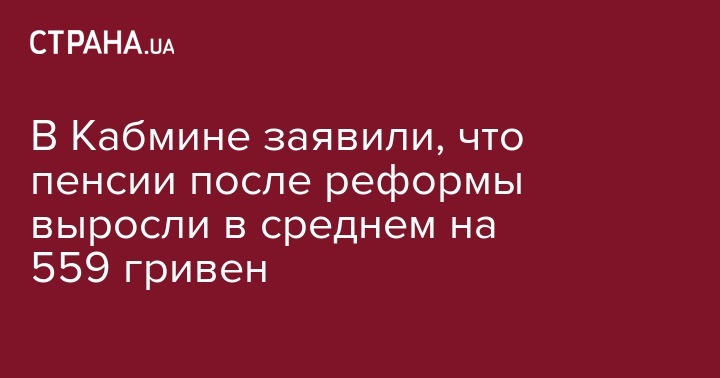 В Кабмине заявили, что пенсии после реформы выросли в среднем на 559 гривен