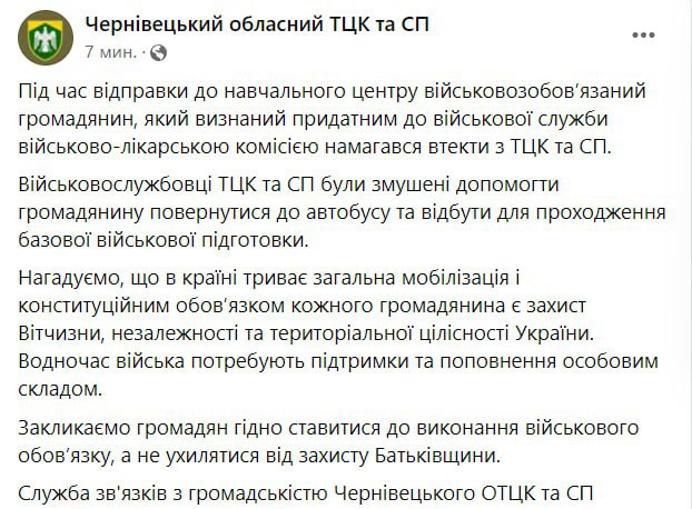 Сообщается, что мужчина хотел сбежать, и сотрудники ТЦК "вынуждены были помочь" ему попасть в автобус.