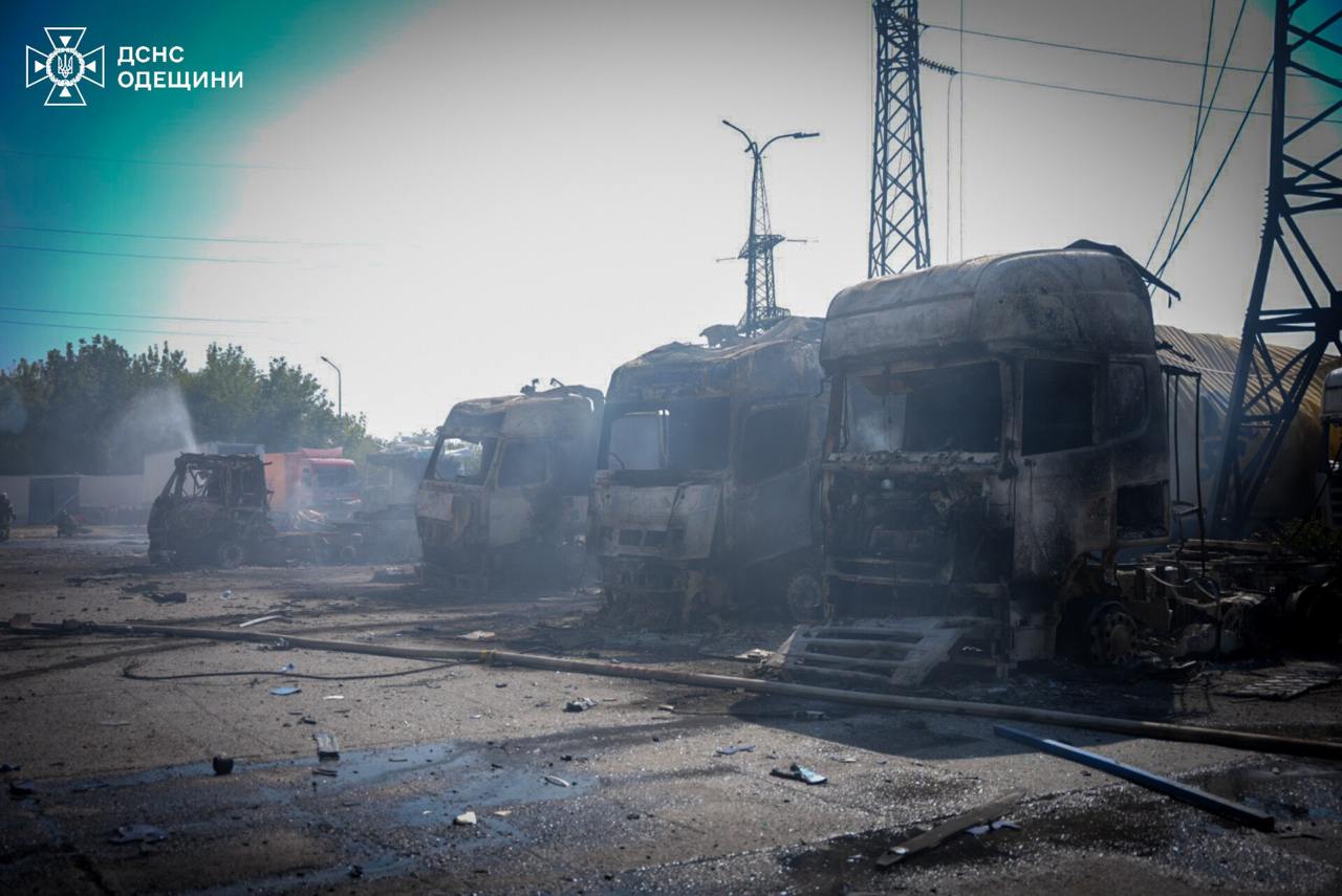 19.59 Около 40 грузовиков сгорело сегодня в результате ракетных ударов по Одессе.