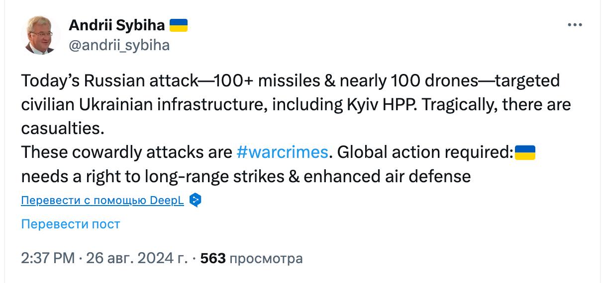 В понедельник, 26 августа, в Украине идет 915-й день войны с Россией.