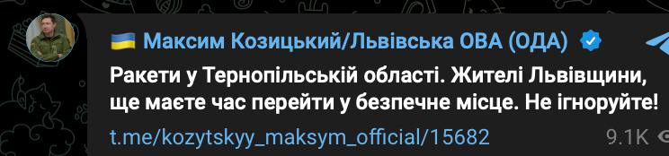 8.43 Ракеты в Тернопольской области, сообщил губернатор соседней Львовщины.