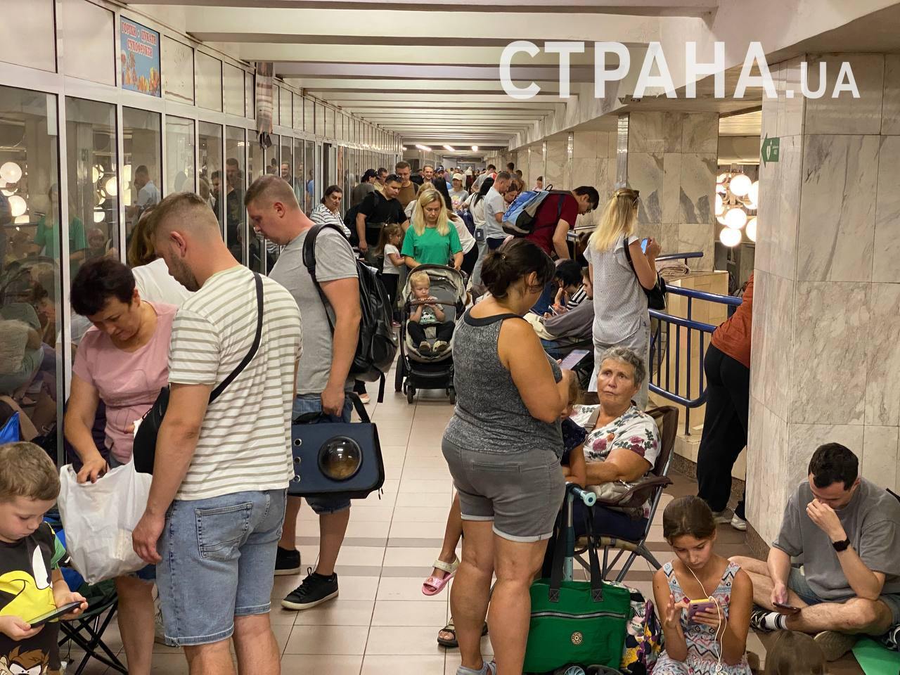 9.19 Киевляне в метро пережидают ракетную атаку. Власти сообщают, что станции Арсенальная и Крещатик работают только в режиме укрытия.