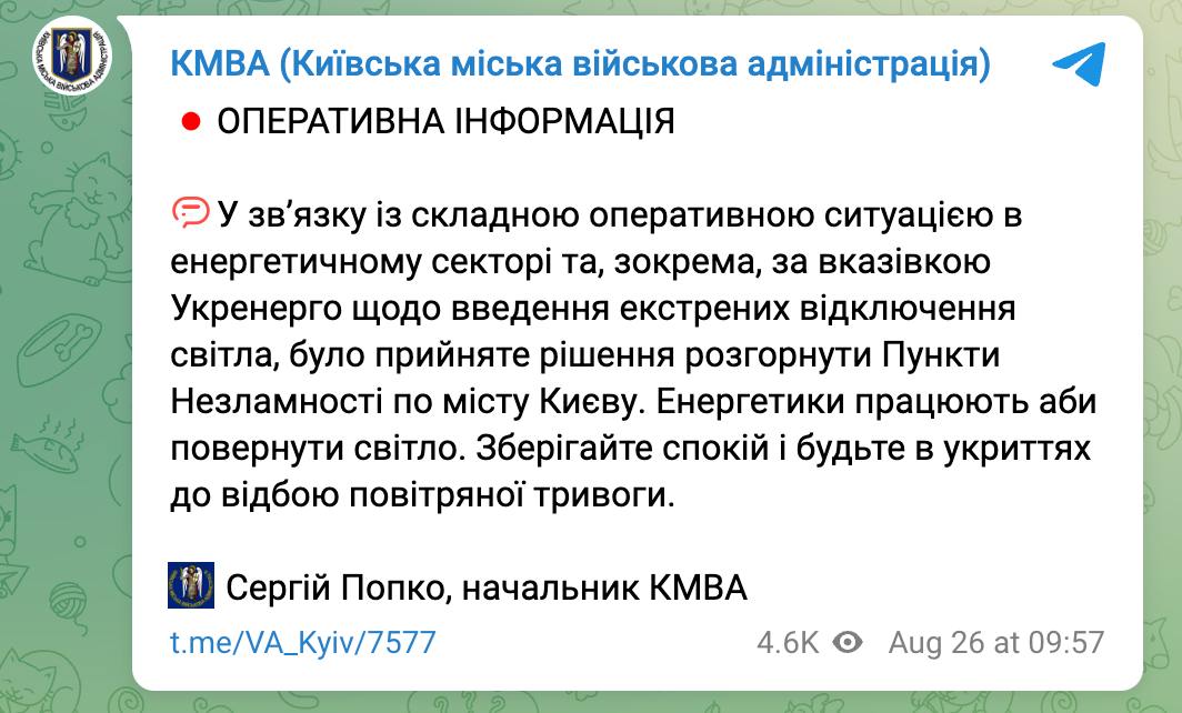 9.12 По всей Украине введены экстренные отключения света, сообщает ДТЭК.