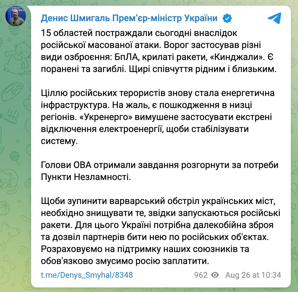 8.51 Глава Офиса президента Ермак дал понять, что россияне наносят удар по украинской энергетике.