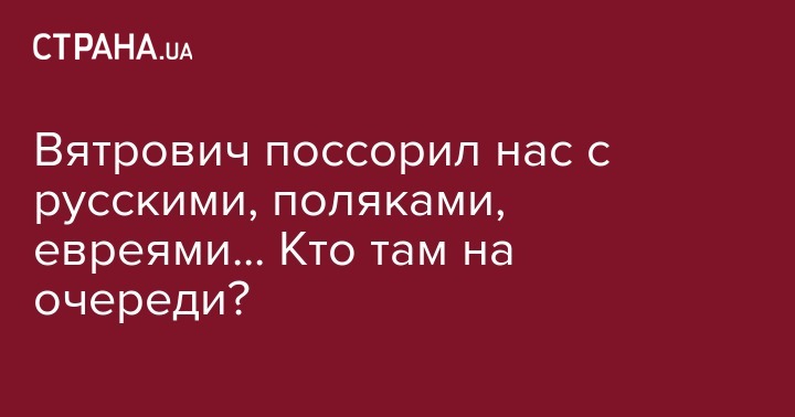 Господин Вятрович умудрился поссорить нас не только с русскими. А потом и поляками. Но уже и с евреями. Истинный украинец. Полон национальной памяти. Отказывает в ней другим народам. Разборчив в союзниках.
