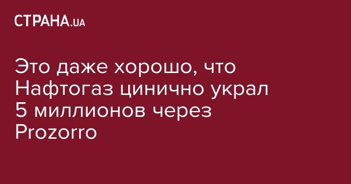 Честно говоря, я даже и рад, что "Нафтогаз" демонстративно и цинично украл 5 млн. грн. через Prozorro на покупку очередного Мерседеса.