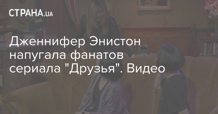 Американская актриса Дженнифер Энистон разыграла поклонников телесериала "Друзья", выпрыгнув из-за дивана во время экскурсии по павильону на месте съемок в кафе Central Perk.