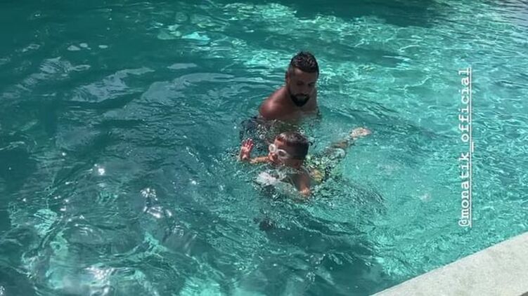 Также Ирина опубликовала видео, на котором ее супруг учит ребенка плавать.