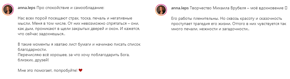 Осенью в постах Анны начали появляться меланхолические посты о смысле жизни, переоценке настоящего и любви к самой себе. То ли пора времени повлияла на супругу Лепса, то ли ориентировочно в этот период времени их отношения окончательно раскололись на "Он" и "Она".