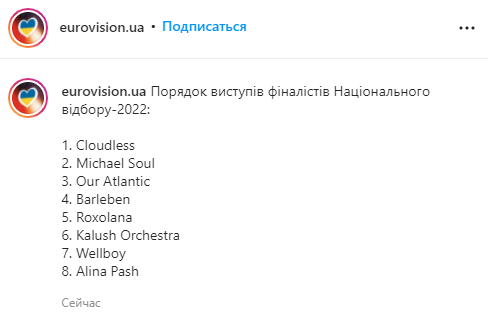 Стало известно, в каком порядке выступят финалисты на нацотборе. Фото: instagram.com/eurovision.ua