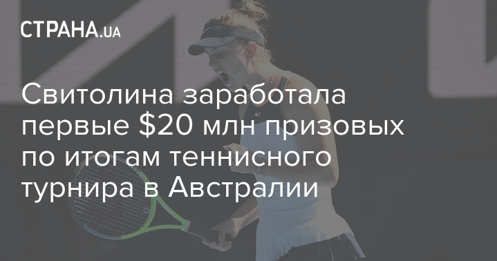 Лучшая украинская теннисистка Элина Свитолина по итогам Открытого чемпионата Австралии преодолела отметку 20 млн долларов по сумме заработанных призовых за карьеру.