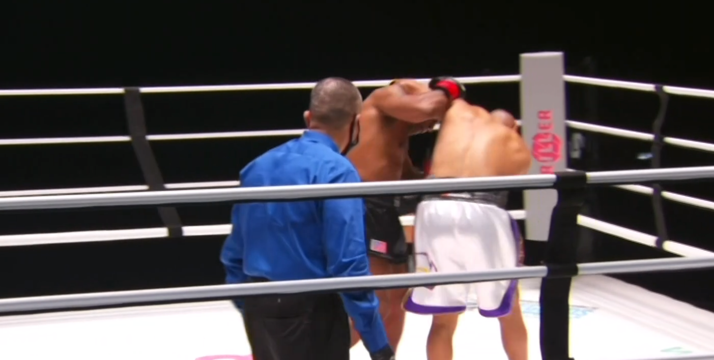6:04 И в первом раунде ютубер отправляет соперника в тяжёлый нокдаун. Но Робинсон сумел встать. А затем ринулся в клинч и прозвучал гонг на перерыв.