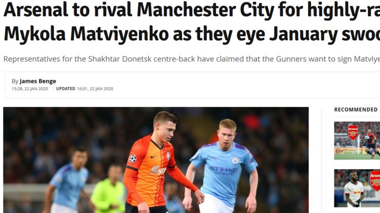 Лондонские СМИ сообщают о покупке Арсеналом Матвиенко, скриншот: football.london