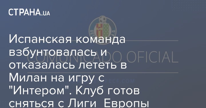 Испанская команда взбунтовалась и отказалась лететь в Милан на игру с "Интером". Клуб готов сняться с Лиги Европы