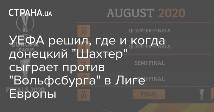 Вторая игра между донецким "Шахтером" и немецким "Вольфсбургом" в 1/8 финала Лиги Европы назначена на среду, 5 августа, в Киеве на НСК "Олимпийский". Она пройдет при пустых трибунах из-за карантинных ограничений.