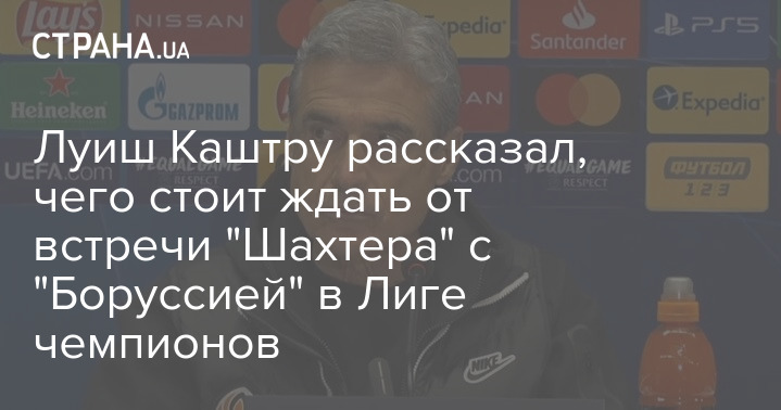Главный тренер футбольного клуба "Шахтера" Луиш Каштру, которые ранее заявил, что целью ФК является выход на поле "Донбасс-Арены" в Донецке, поделился ожиданиями перед матчем Лиги чемпионов против "Боруссии", с которой украинскому клубу предстоит сыграть в третьем и четвертом турах группового турнира.