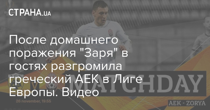 Бронзовые призеры Украинской Премьер-лиги футболисты луганской "Зари" обыграли в матче четвертого тура группового этапа Лиги Европы УЕФА греческий АЕК со счетом 3:0.