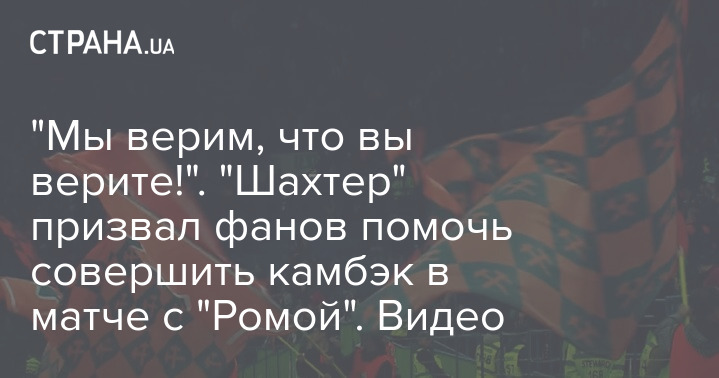 "Мы верим, что вы верите!". "Шахтер" призвал фанов помочь совершить камбэк в матче с "Ромой". Видео