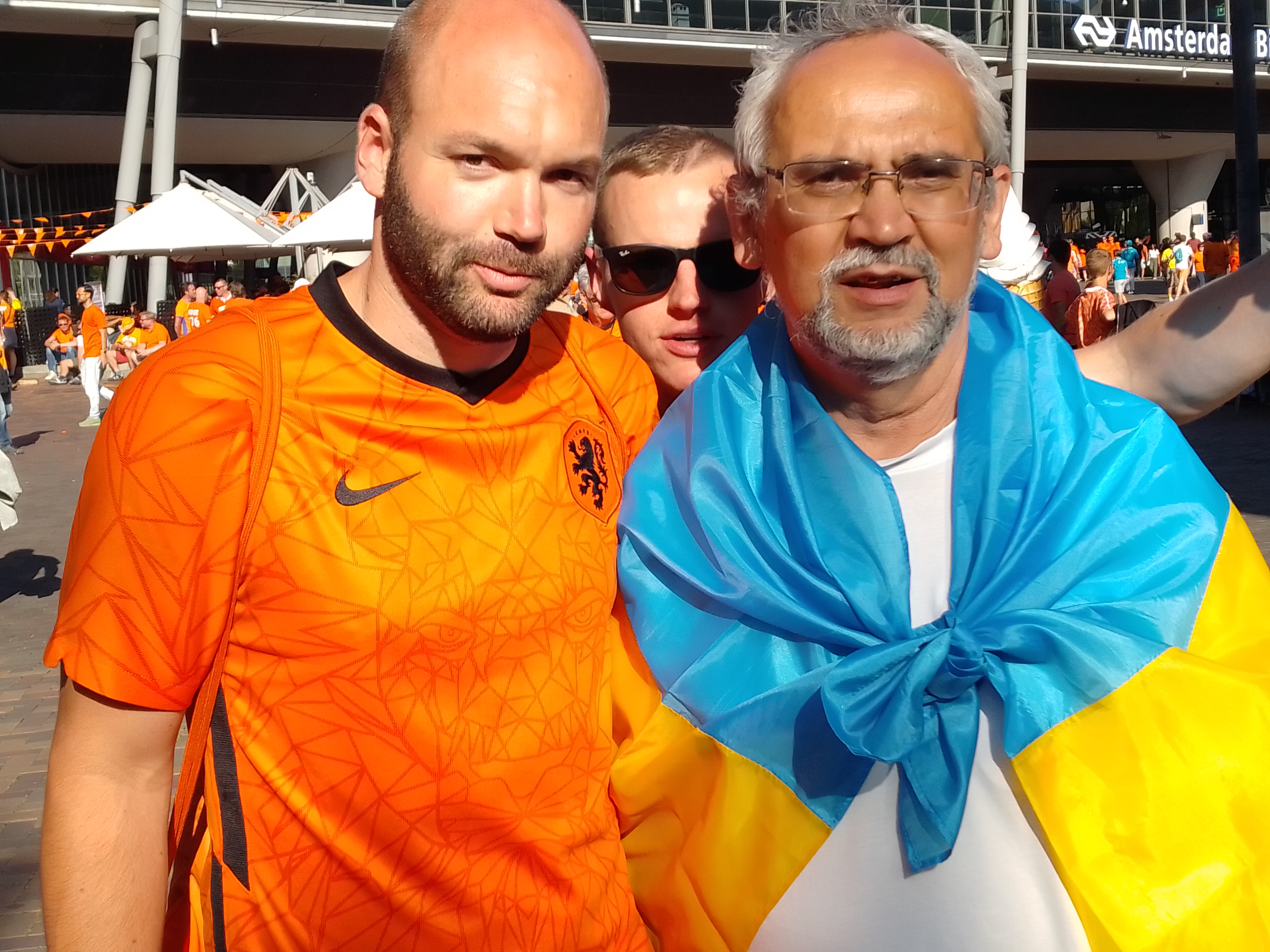 23:56 После финального свистка под оглушительный шум "оранжевого моря" трибун игроки сборной Нидерландов прошли круг почета, благодаря болельщиков. Но и наших любителей футбола, сумевших несмотря ни на что добраться до Амстердама, тоже было очень хорошо слышно. Их было несколько сотен, против примерно 15 000..