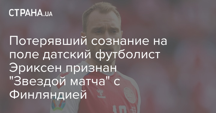 На сегодняшнем футбольном матче между сборными Финляндии и Дании Чемпионата Европы по футболу 2020 награду "Звезда матча" получил игрок Дании Кристиан Эриксен, который ранее потерял сознание на поле.