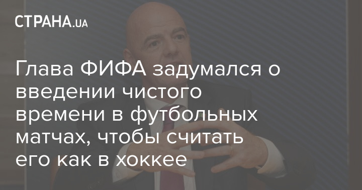 Президент Международной федерации футбольных ассоциаций (ФИФА) Джанни Инфантино считает, что стоит задуматься о введении в матчах чистого времени, как в хоккее. Подразумевается, чтобы с каждой остановкой игры рефери останавливал и секундомер.