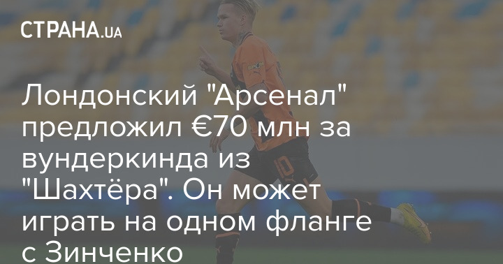 Лондонский "Арсенал" предложил €70 млн за вундеркинда из "Шахтёра". Он может играть на одном фланге с Зинченко