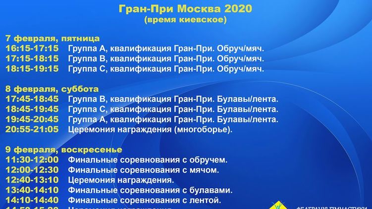Расписание соревнований. Фото: Facebook/ team.ukraine.rg