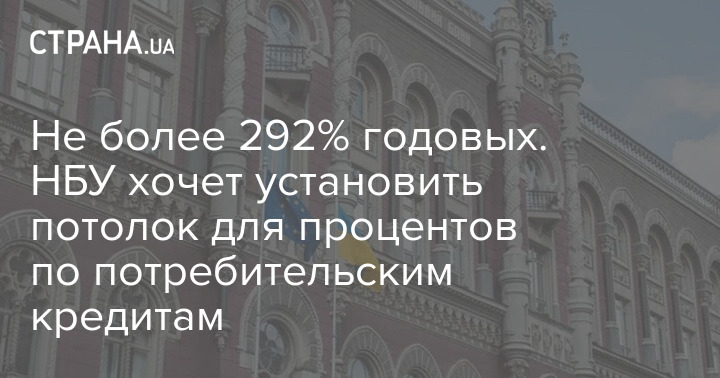 Нацбанк хоче встановити стелю кредитних ставок для українців на рівні 292% річних. Споживчі кредити в Україні не повинні коштувати понад 0,8% на день або 292% річних у перерахунку. Таке обмеження НБУ заклав у свій законопроект, яким вносяться зміни до чинного закону "Про споживче кредитування".
