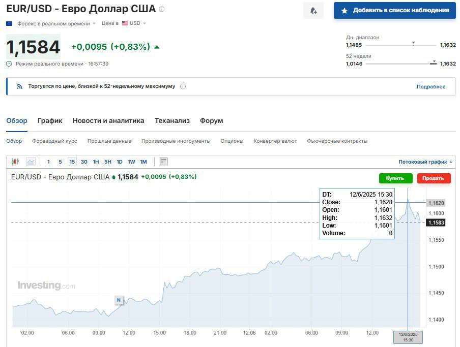 Подорожчання євро в Україні пов'язане з курсовими стрибками в парі євро/долар на світовому ринку. Сьогоднішній пік склав 1,1632, і його НБУ ще не врахував у своєму офіційному курсі, інакше той досяг би 48,3 грн/€.