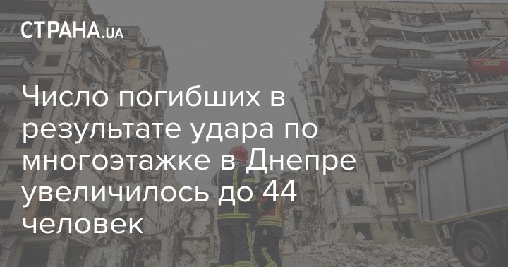 Кількість загиблих внаслідок удару по багатоповерхівці у Дніпрі збільшилася до 44 осіб