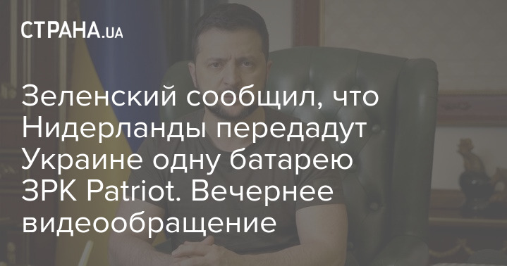 Зеленський повідомив, що Нідерланди передадуть Україні одну батарею ЗРК Patriot. Вечірнє відеозвернення