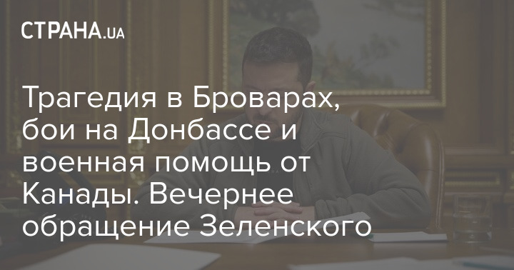 Трагедія у Броварах, бої на Донбасі та військова допомога від Канади. Вечірнє звернення Зеленського
