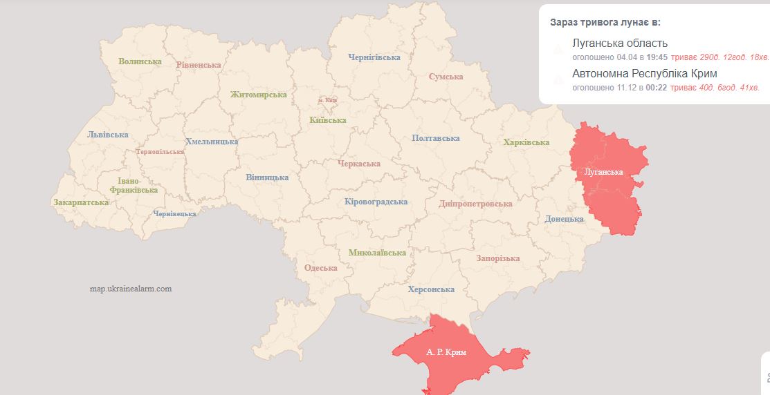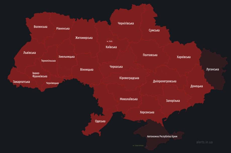 09.42 Регіони на сході України у зоні повітряної тривоги.